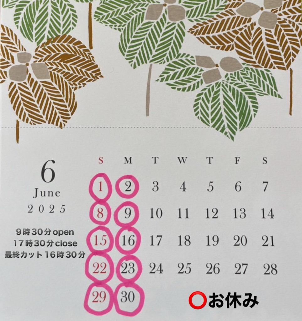 6月の日程です!5月のご予約はご満席になりました!