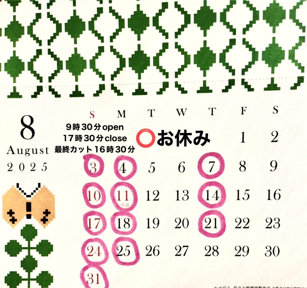 7月8月はお休みをいつもより多く頂こうと思っております。ご迷惑をおかけしますがよろしくお願いします。