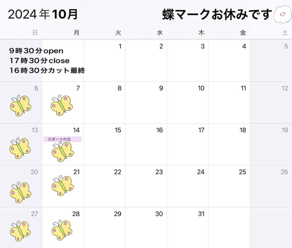9月のご予約は全て埋まりました。いつもご予定を立てて頂き本当にありがとうございます!