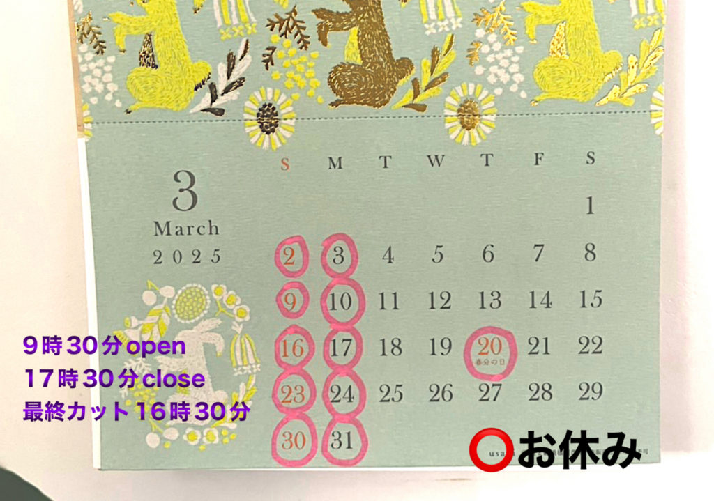 3月はありがたいことにご予約が早めに埋まっておりまして、
